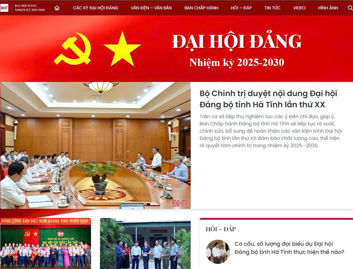 Báo Hà Tĩnh đã xây dựng các chuyên trang, chuyên mục trên các loại hình báo chí phục vụ tuyên truyền về đại hội.