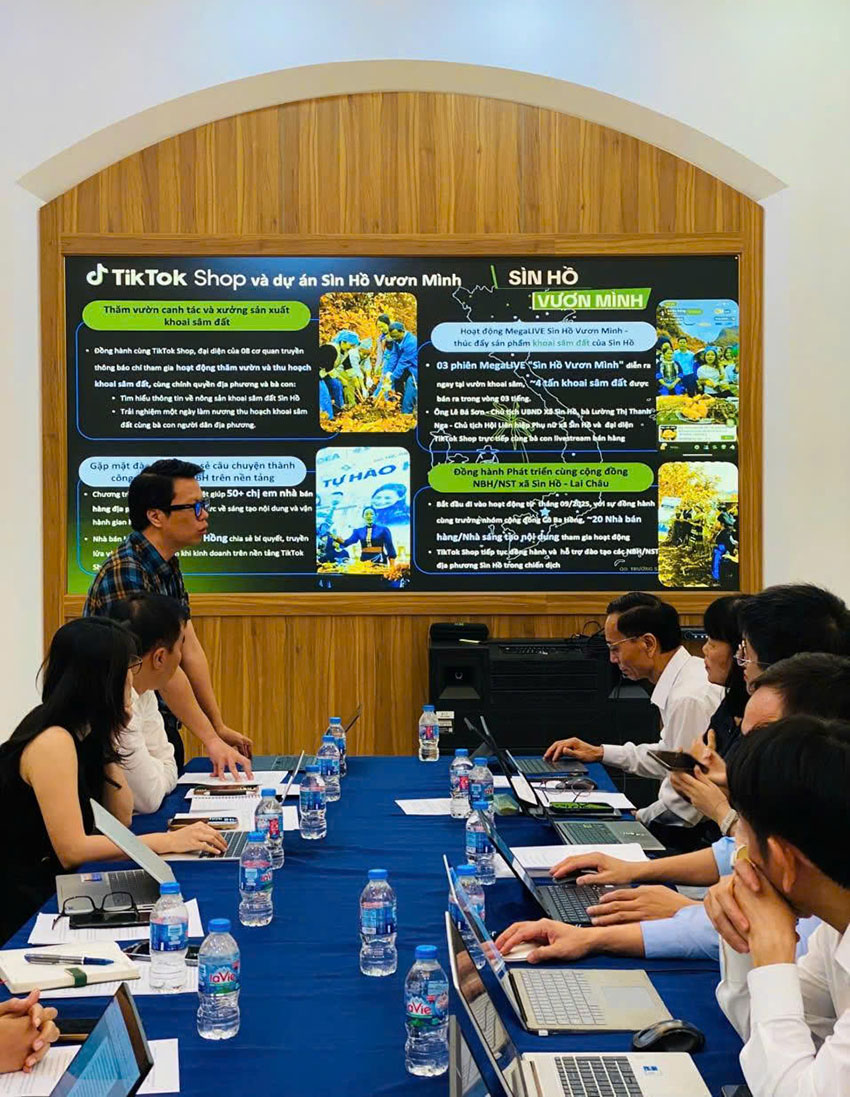 Đại diện Công ty TNHH công nghệ Tiktok Việt Nam trao đổi với đoàn công tác Sở Công Thương và các doanh nghiệp của tỉnh tại buổi làm việc